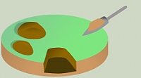 Nehmen Sie die zu Beginn beiseitegelegte reine Aushubserde und bedecken als Abschluß das Aquita -Erdgemisch. Zur besseren Wasseransammlung legen Sie nun noch einen kleinen Rand an.