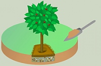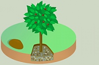 Heben Sie ein Loch doppelt so groß wie die Baumwurzel aus. Geben Sie einen großen und einen kleinen Teil der Aushuberde beiseite.